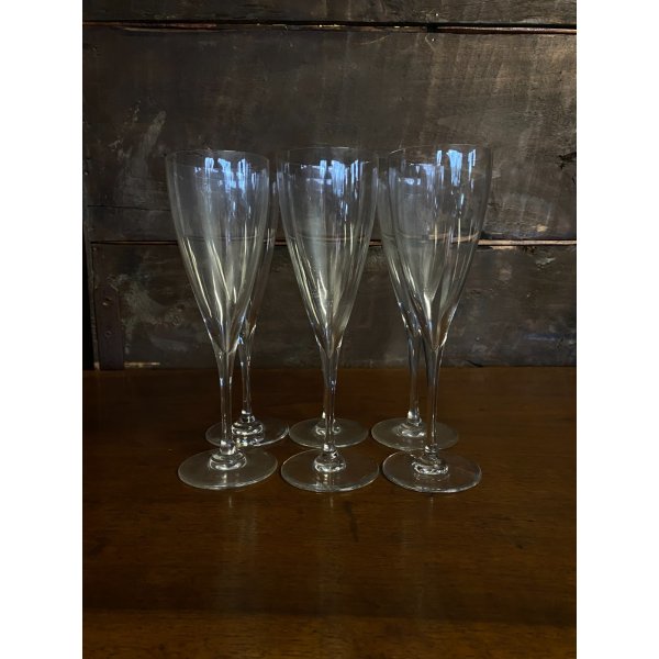 Meravigliosa suite da 6 flûte champagne in cristallo di Baccarat, modello Dom Pérignon. Splendidamente creato negli anni '60, Dom Pérignon è un modello dal design deciso, puro ed elegante, che conferisce un carattere moderno e sofisticato all'intera tavola. Permette di realizzare una varietà di mise en place di alta qualità, da quelle classiche a quelle più contemporanee. In perfette condizioni, nessuna scheggiatura. Marchio d'attribuzione sulla base.